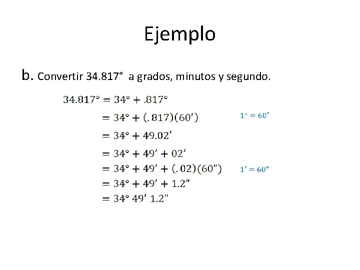 1 13600 277778e-4 0000277778 Para ángulos con d grados enteros m minutos ys segundos. Calculadoras similares Convertir de grados a radianes Conversión de grados-minutos-segundos a grados decimales y viceversa. Como observaras estamoshaciendo el proceso de.