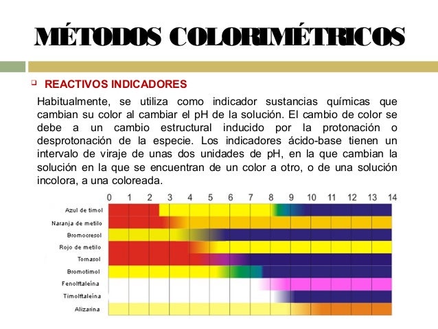 Hay tres métodos comunes para medir el pH de los líquidos cada uno de. El colorimétrico es más sencillo y utiliza sustancias llamadas indicadores de pH que se pueden encontrar en diferentes presentaciones con propiedades particulares para medir rangos de pH específicos. Un indicador de pH es una sustancia que permite medir el pH de un medio.